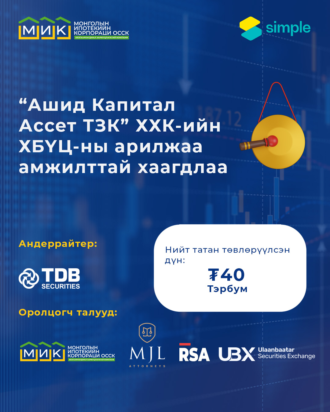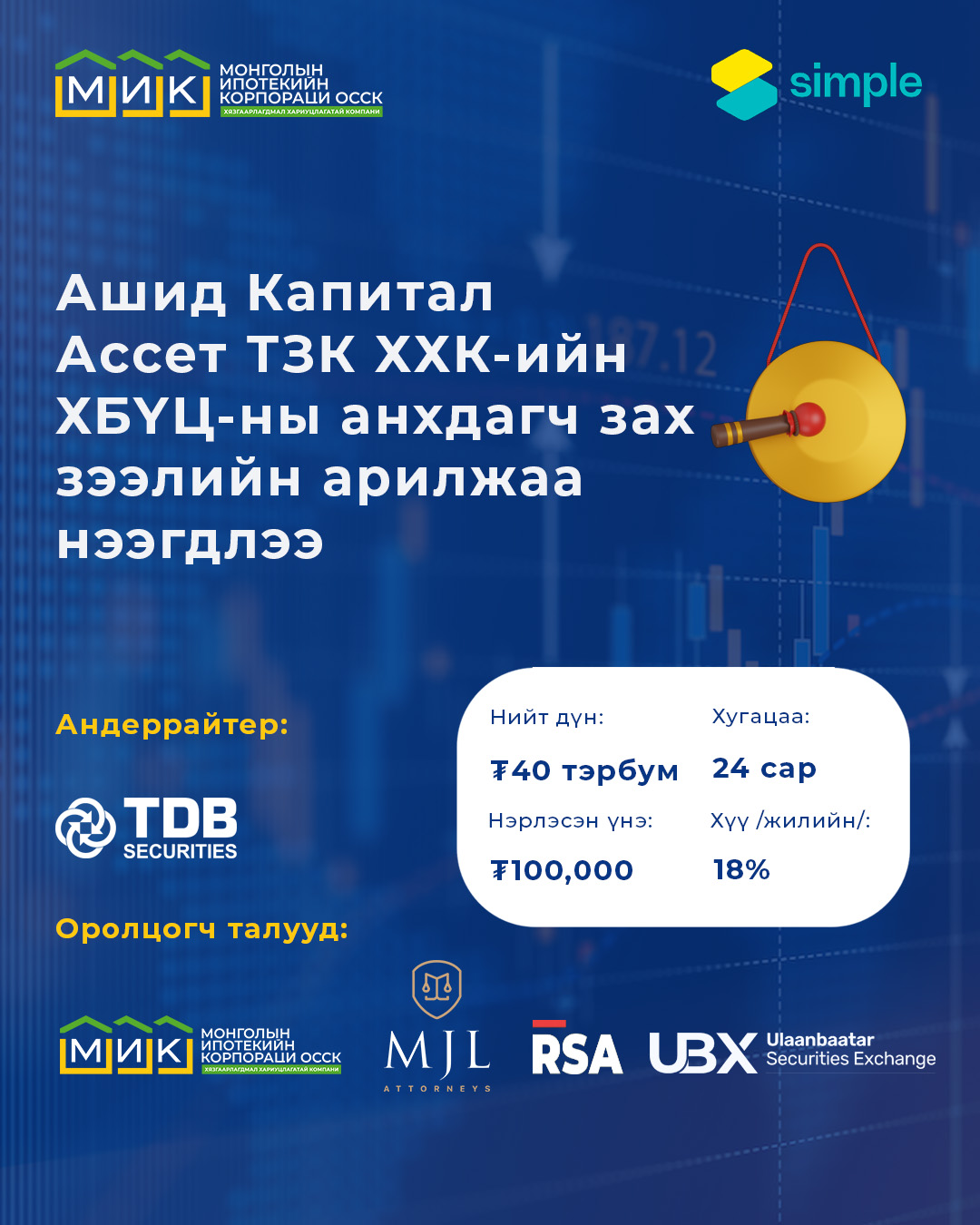 “Ашид Капитал Ассет ТЗК” ХХК-ийн ХБҮЦ-ны арилжаа амжилттай хаагдл....